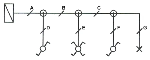 Egy elosztó áramút rajza látható, válaszd ki az elosztóra igaz állításokat!