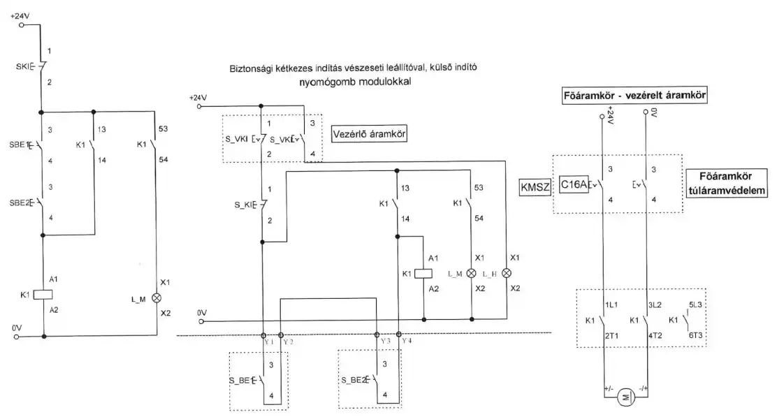 Távoli-helyi vezérlés, vészeseti leállítóval